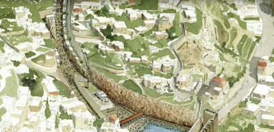 | Depiction of the Pool of Siloam and steps leading to the Temple Mount |